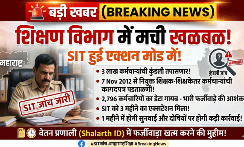 महाराष्ट्र के शिक्षा विभाग में ‘शालार्थ आईडी’ (वेतन प्रणाली) में हुए कथित फर्जीवाड़े की जांच के लिए गठित विशेष जांच दल (SIT) अब पूरी तरह एक्शन मोड में है। इस जांच के दायरे में राज्य के करीब 3 लाख शिक्षक और गैर-शिक्षण कर्मचारी आएंगे।